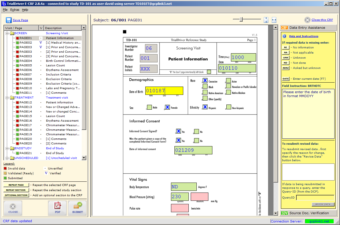 Source Document Verification is fully integrated - monitors receive their own login credentials which authorizes them to monitor one or more sites. The E-CRF opens in a special monitoring mode which does not allow data edits. When a page has been fully verified, it is then locked completely, so that no further changes can be made to it, unless the verification is rescinded.
