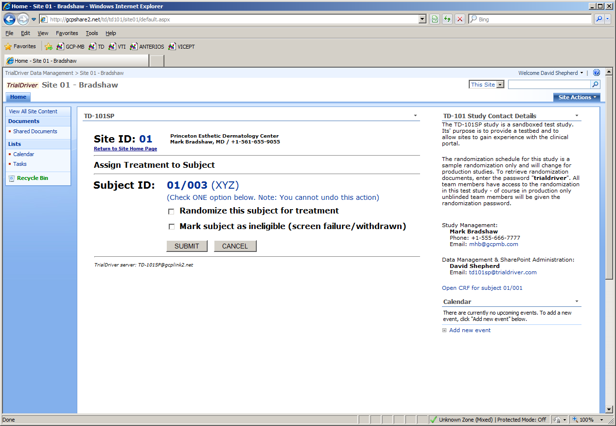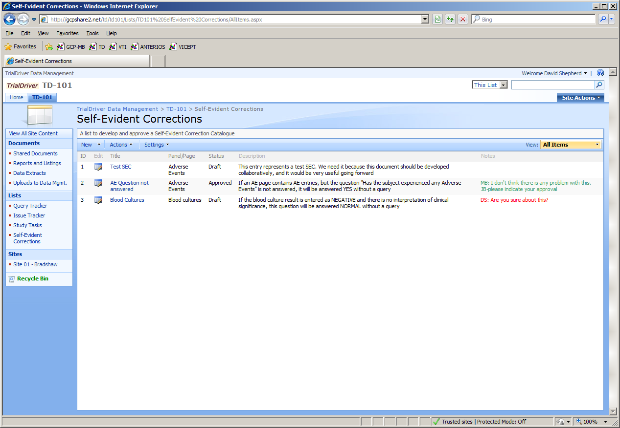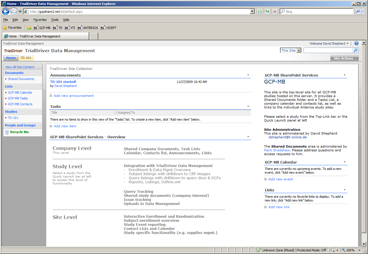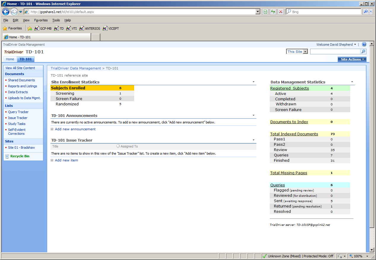 Most critically, the SharePoint Study Portal provides a web-based window into the TrialDriver Data Management system, so that reports, CRF images, queries and other data can be called up in real time.
